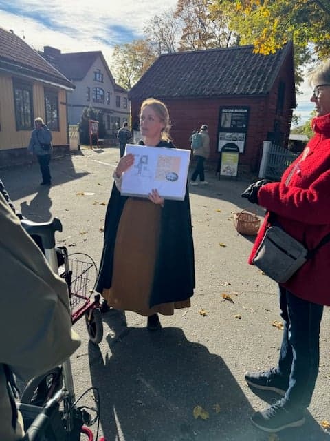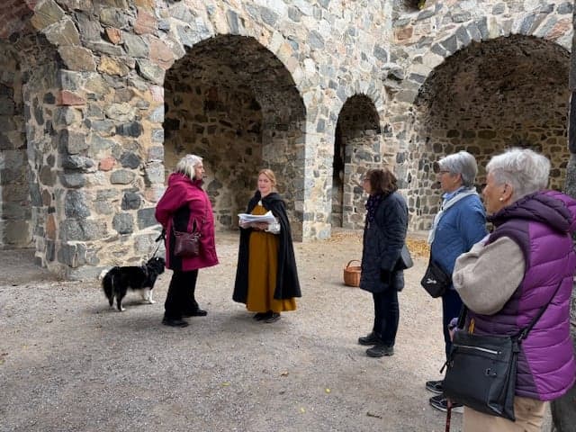 Efter att ha läst Marie Lok Björks bok Om jag kunde följa dig bort, som delvis utspelar sig i Sigtuna, reste bokcirkeln dit och fick en fantastisk dag. En kunnig och entusiasmerande guide, Sara Heine, berättade om Sigtunas historia och visade oss den charmiga, lilla staden. Vi såg torg, ruiner, runstenar och vill ni veta var nyckeln till fyllecellen i rådhuset finns, så kan ni fråga bokcirkeln. Fyllecellen användes av den som fått lite för mycket i sig och inte hade råd med ett hotellrum.